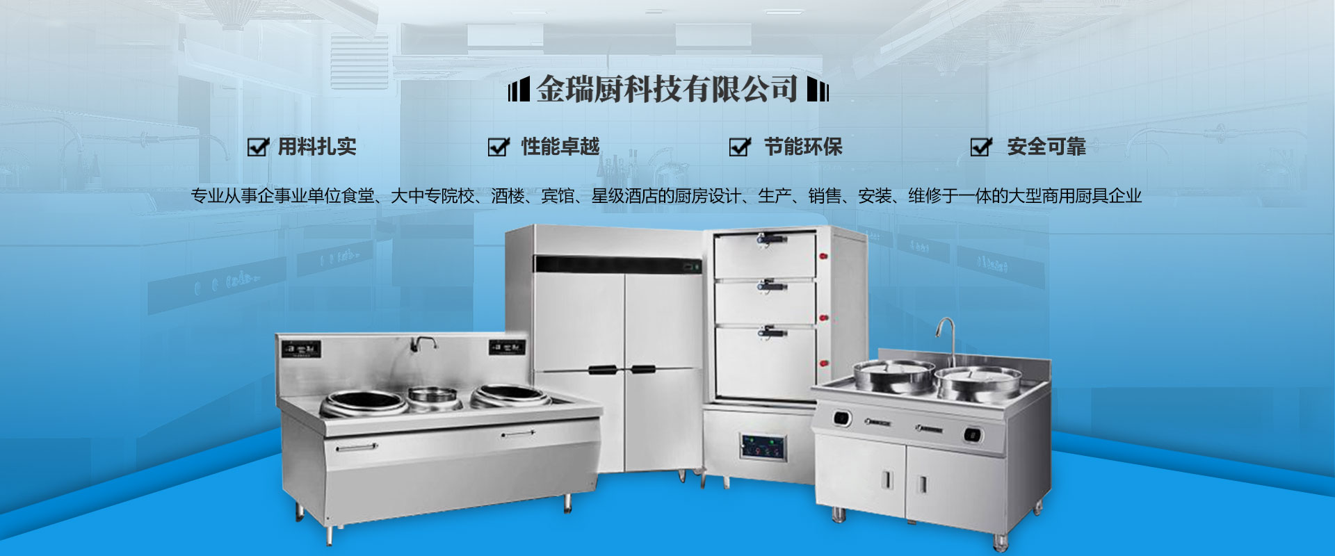 四川金瑞廚科技有限公司是一家專業(yè)從事企事業(yè)單位食堂、大中專院校、酒樓、賓館、星級(jí)酒店的廚房設(shè)計(jì)、生產(chǎn)、銷售、安裝、維修于一體的大型商用廚具企業(yè),。公司擁有一批經(jīng)過(guò)專業(yè)培訓(xùn)的高素質(zhì)管理人員及工程技術(shù)人員,團(tuán)隊(duì)分工實(shí)施工程策劃、產(chǎn)品研發(fā)、設(shè)計(jì)、制造、檢驗(yàn)、安裝、售后服務(wù)等方面的工作,擁有從設(shè)計(jì)、安裝、調(diào)試到提供完善迅速的售后服務(wù)一體化的專業(yè)水準(zhǔn)。公司主要銷售廚房設(shè)備、不銹鋼制品、酒店設(shè)備、食品加工設(shè)備、制冷設(shè)備、通風(fēng)設(shè)備、消音設(shè)備、防水處理設(shè)備等。